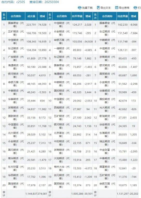 从持仓演讲看,当日C2505的总成交量为114万余手,较昨日大幅添加二十七万余手。多头从力削减39501手,资金流出,多头大幅减仓,申明该合约部门资金正在离场,后期上涨动能有所削弱!