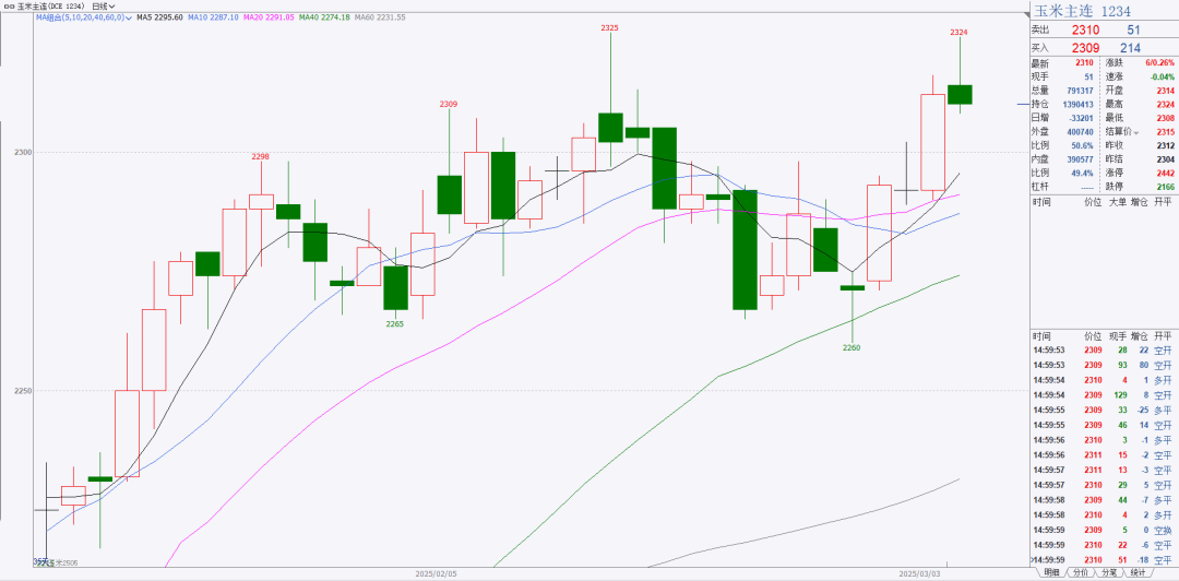 国际方面,因为市场对商业严重场面地步的担心加剧,和对南美大丰收预期的担心,加上美国的商业政策存正在不确定性,手艺形态利空,激发多头平仓抛售。周一玉米期货持续第九日下跌,较前期高点回落不少,进口玉米成本大幅下滑62元。美国农业部玉米出口查验周报显示,截至2025年2月27日当周,美国玉米出口查验量为1351373吨,比一周前的1166368吨提拔18%,比客岁同期增加18%。可是当周仍未对中国出口查验。同时因为关税商业胶葛,中国对原产于美国的玉米加征15%关税,3月10日起头施行。2024年中国从美国进口玉米207万吨,仅占昔时全数进口数量的15%摆布。巴西为中国进口玉米最大来历国,征询机构称,截至2月27日当周,2024/25年度巴西中南部首季玉米收成进度为46%,二季玉米播种面积达预期面积的80%(一周前为64%),但掉队于客岁同期86%。乌克兰是中国进口玉米第二大来历国,其农业部称,截至3月2日,2024/25年度谷物出口量为2920。2万吨,虽高于前期的2842。9万吨,但比客岁同期少75万吨(本年度第二次低于客岁同期),此中玉米出口量为1462万吨。近期玉米盘面波动猛烈。从力合约上周三最低跌至2260元后上涨,本周二正在增储刺激下最高升至2324元,接近前期高点呈V型反转,但当日冲高削弱,上涨压力沉沉,上方动能减缓。手艺上,短期上涨趋向较着,日线看,五日均线上穿十日均线,MACD构成金叉;周线虽坐上四十均线但面对六十线;月线面对必然压力。而且K线图上方有主要压力。从根基面看,现货价钱疯涨提振情感,期现价差逐渐恢复,沉心不竭上移。盘面多日反弹上涨。综上,玉米盘面虽然有再创年内新高的可能性,可是上方压力逐渐加强,可能有回调风险,临时不雅望,逢高获利平仓 。小我概念,仅供参考!主要提醒:本文的消息均来历于公开可获得的材料,所载材料的精确性、靠得住性、时效性及完整性力图精确靠得住但并不做任何或暗示的。本文发布的概念和消息仅供投资者参考,不形成对任何人的投资。期货的风险和收益比力大,隆重参取,对于由此给您形成的未便暗示诚挚歉意,感激您的理解取共同。