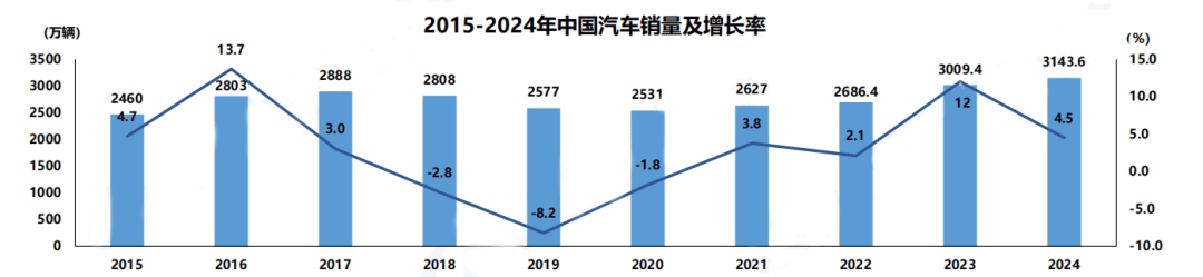 2024年我国汽车产销总量持续16年稳居全球第一。汽车产销别离完成3128。2万辆和3143。6万辆,同比别离增加3。7%和4。5%。